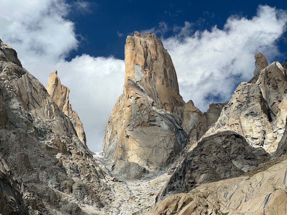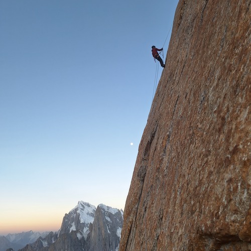 Über 650 Meter Granit, Schwierigkeiten bis 7c+ und das alles auf über 6.000 Metern Höhe eine der beeindruckendsten Bigwall-Routen der Welt.