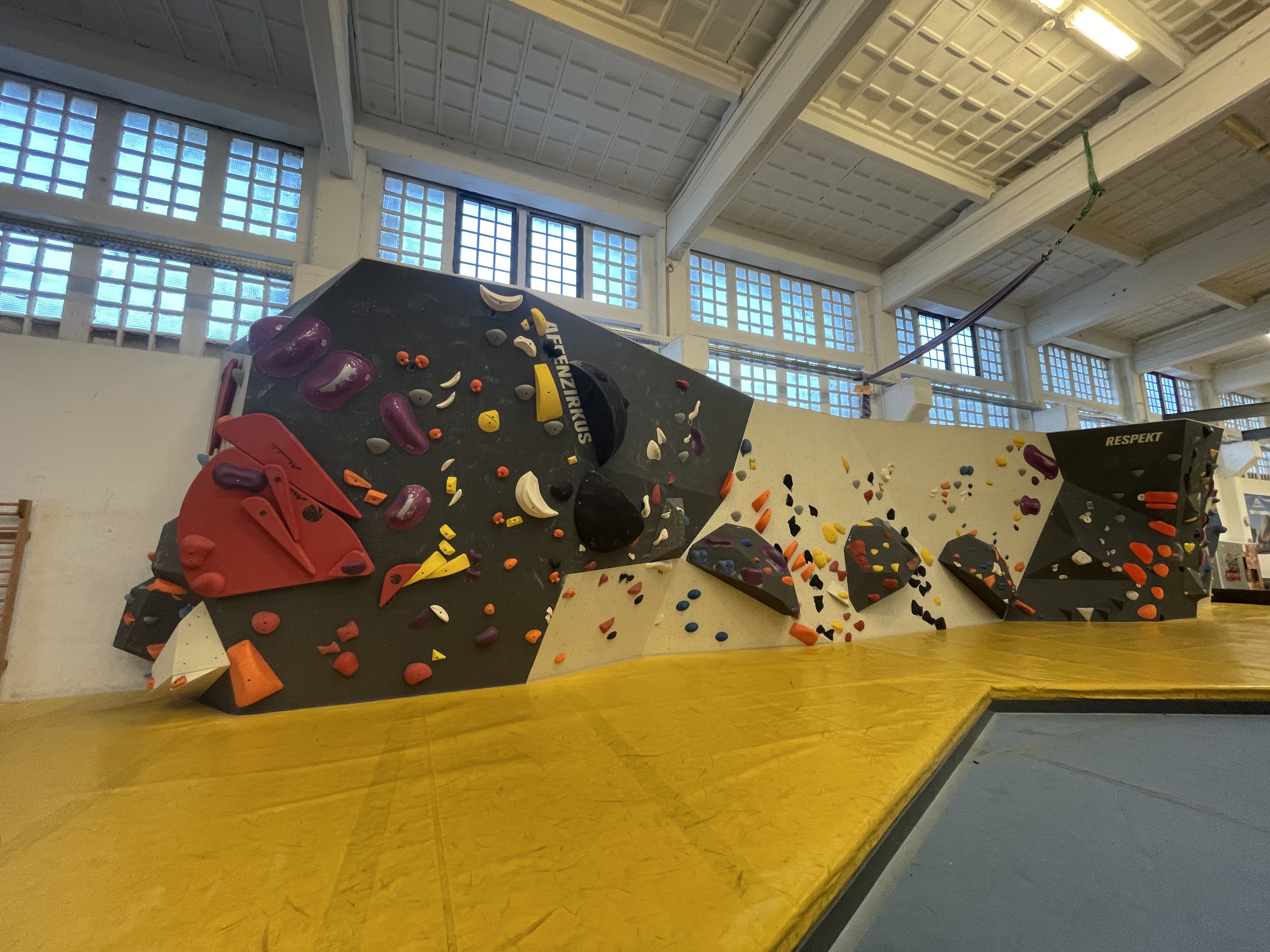 Dagegen lädt der Affenzirkus vor allem die kleinen Kletterfans zu bunten, spaßigen Bouldern ein.