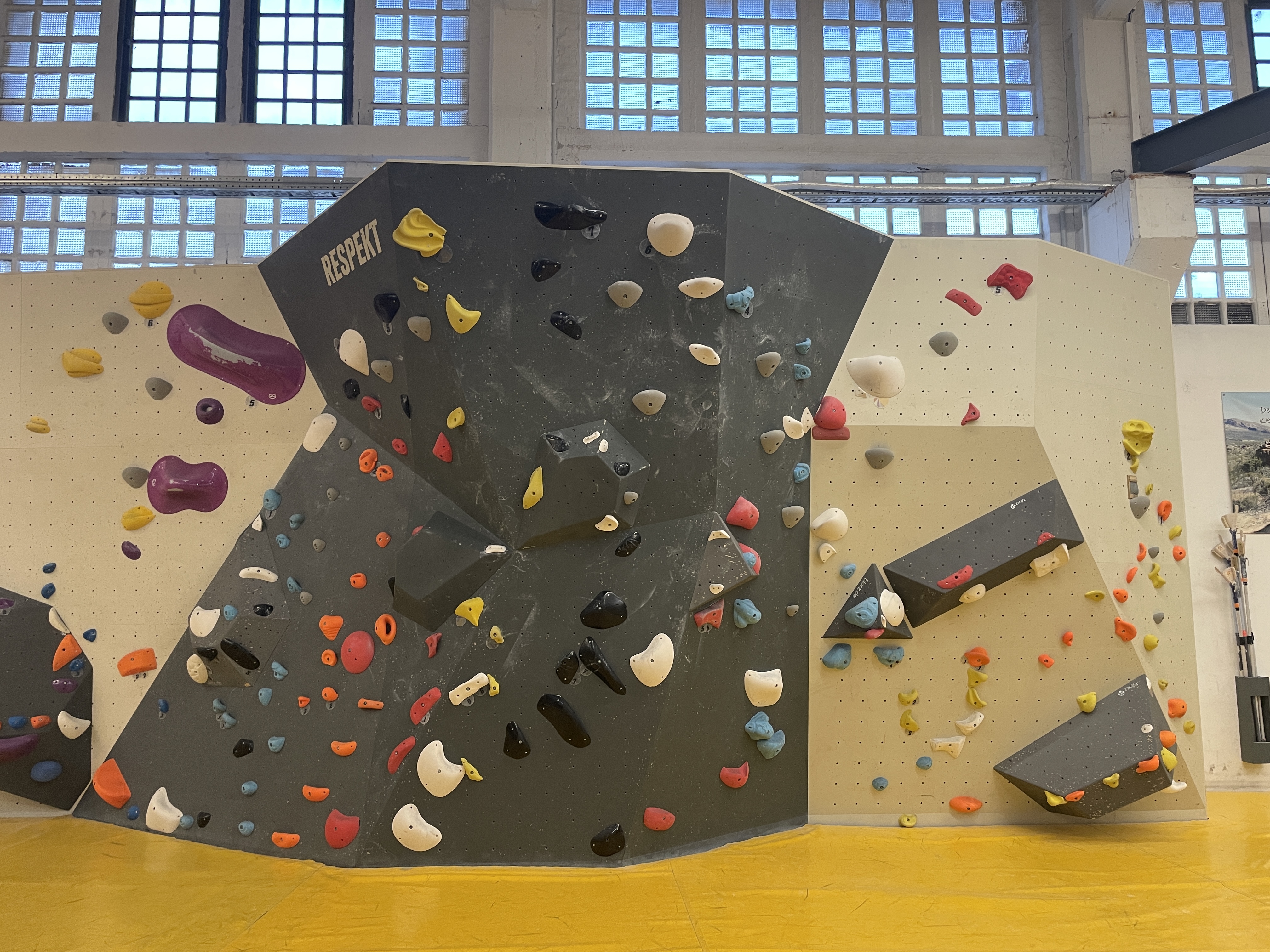 In der Kinderhalle ist der Sektor Respekt frisch bestückt hier gibt’s viele bunte Boulder, die besonders den kleinen Kletterfans Spaß machen.