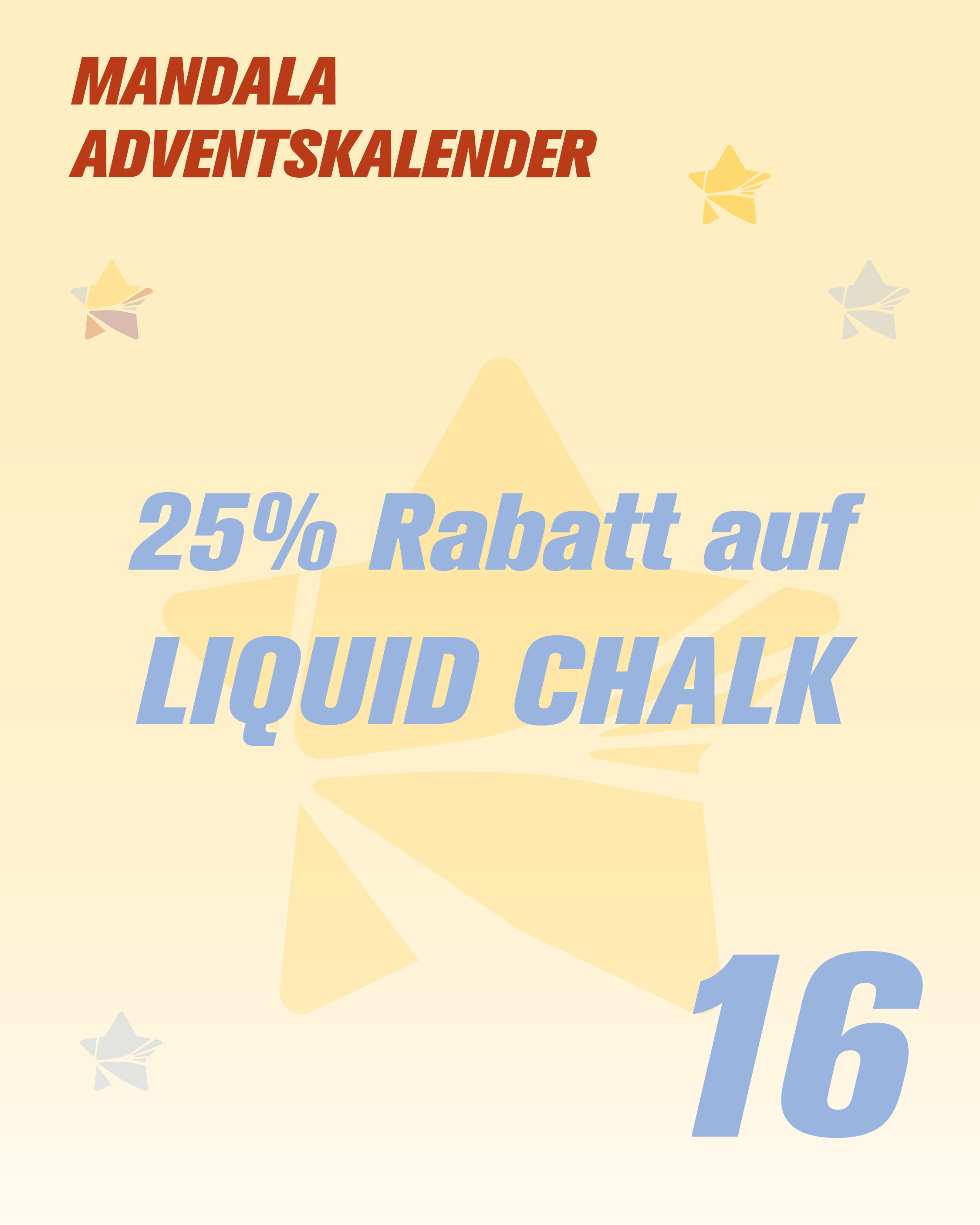 Mandala Boulderhalle Dresden Eventübersicht 16.12.25 16.12.25 Adventskalender Türchen 16 Das 16. Türchen geht auf. Heute bekommt ihr 25% Rabatt auf das Mandala Liquid Chalk bei uns im Shop. Viel Freude für euch mit dem Mandala Adventskalender! Bon bloc! Euer Mandalateam Was steckt heute hinter den Türchen?
